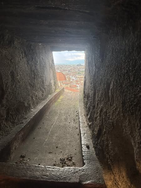 全程463級階梯,一路蜿蜒、狹窄,有時需要側身通過。氣喘吁吁中,我經過濕壁畫-瓦薩里喬的《最後的審判》,這個呼應但丁《神曲》的曠世巨作;那些巨大的天使與墮落者就在頭頂,彷彿審視著每一個路過的靈魂。站在那裡,我忽然更強烈地想念媽媽。如果她還在,或許我會傳訊息告訴她我爬到頂了,她一定會為我驕傲,會問我有沒有吃午餐再登頂、有沒有曬傷。那一刻,我的眼眶濕了。在這麼宏偉、永恆的空間裡,我也好像更靠近在天家的她一點。